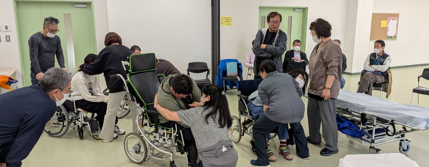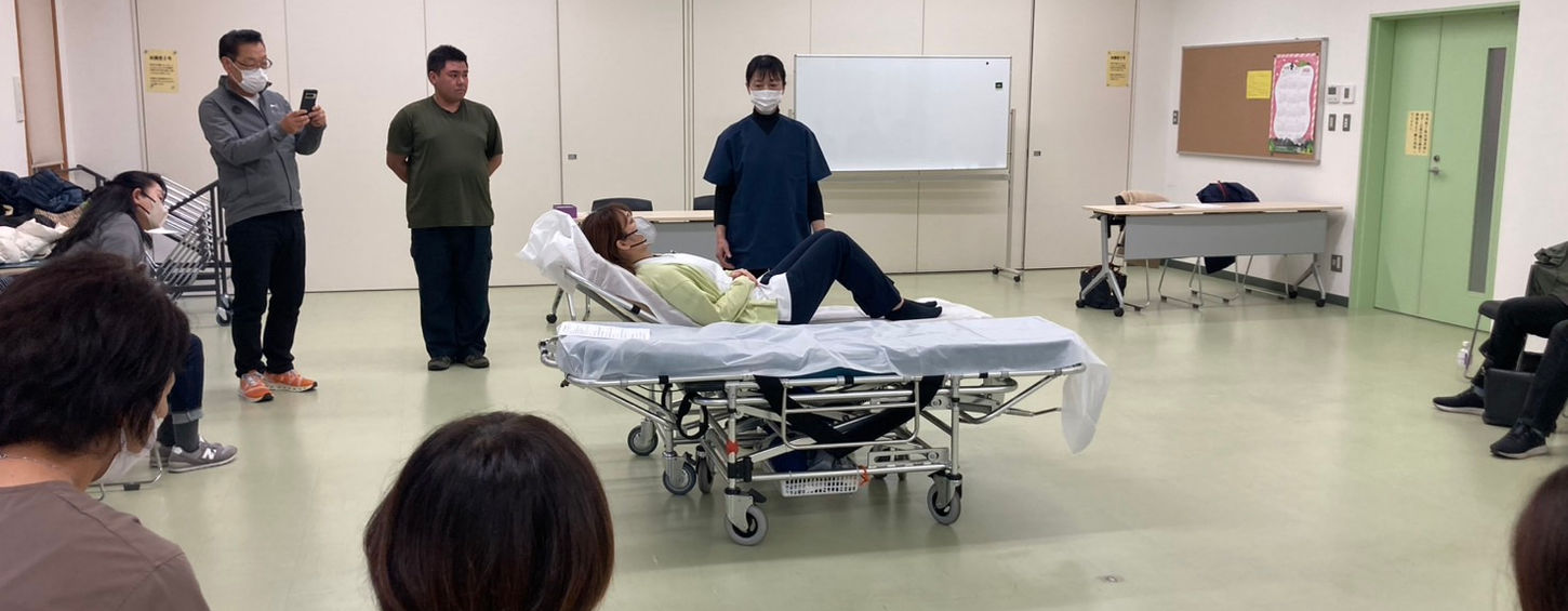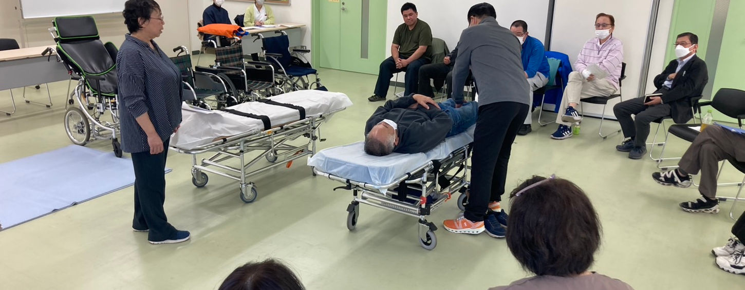 川口市の研修場にて一般社団法人埼玉福祉移送協会主催の「介護技術および急変時対応の研修会」を実施しました。今回は経験豊富な看護師2名も講師として参加しました。